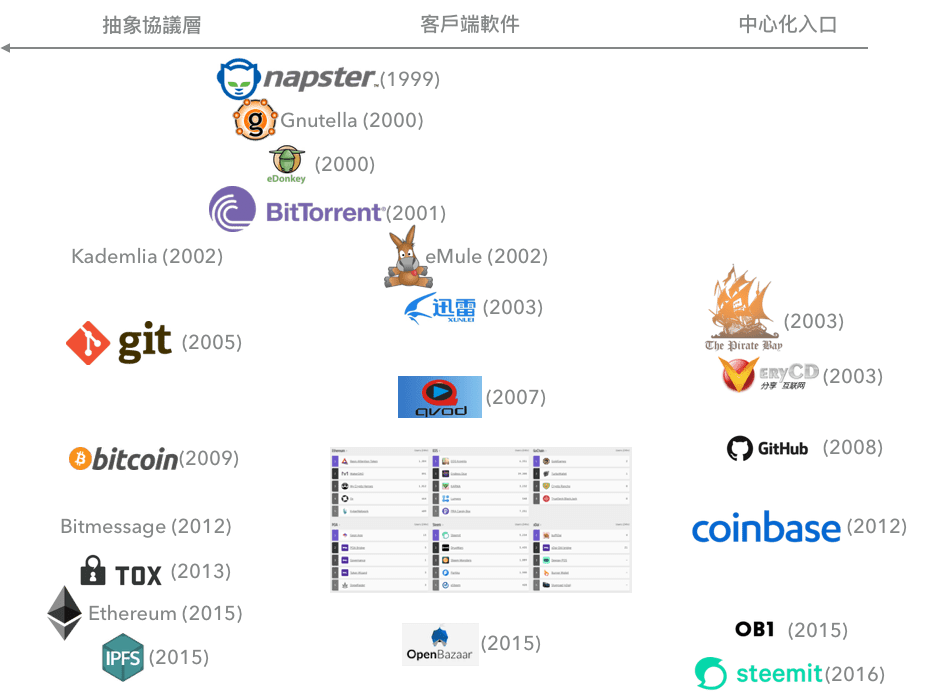 在Web2.0应用刚兴起的时候,互联网还有很强的去中心化趋势的,比如99年的Napster,00年的eDonkey,01年的BitTorrent,02年的eMule,网络流量曾经大部分都是p2p的。