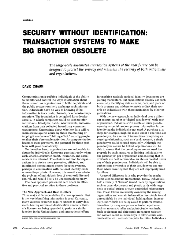 85年David Chaum一篇影响深远的论文算是典型,里面提出了一个保证匿名性、同时提供身份认证的系统。论文标题就说,是为了让big brother过时。