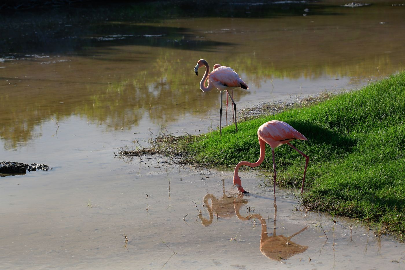还有数量众多的海鸟,在海陆空的交界处徜徉,在渔民们打鱼归来时争抢着案板上落下的美味。其中有粉红的火烈鸟,与天空、海洋和湖泊形成毫不妥协的反差,时不时在一片蓝色和绿色的静郁中划出一道道艳丽。