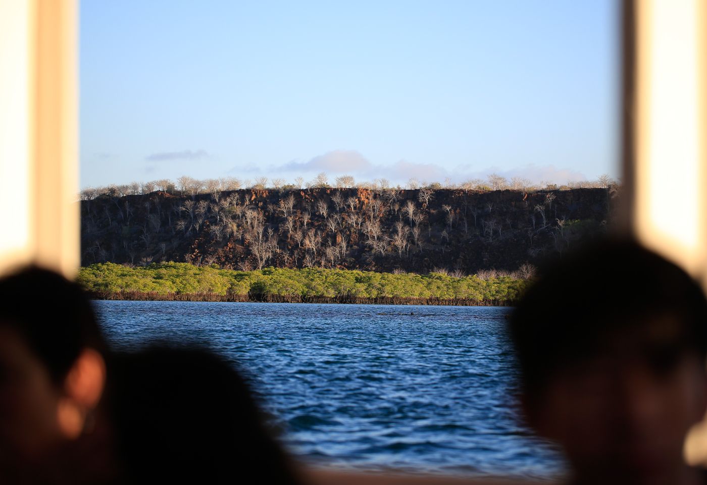 所以你会看到,海狮躺在栈桥上的椅子里,对坐在旁边的你毫不介意;当你坐得太近时,他会大喝一声,让你注意礼貌。海龟慢悠悠地煽动着双臂在水中飞翔,时不时抬头看看水面上费力游动的你,像是在思考这又是什么怪物。鲨鱼成群结队地从一个岩洞游往另一个岩洞,对你这个两脚兽见怪不怪。而海鬣蜥、军舰鸟和许多其他动物,大约只是在你挡路的时候嫌你比较麻烦罢了。