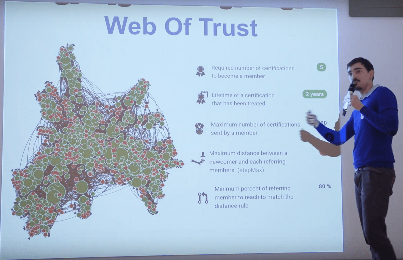 这种人与人之间的去中心化信任,正是类PGP信任网络已经解决了的问题。发源于法国的OpenUDC与Duniter项目,便基于类PGP的信任网络设计了电子货币,构建了边界明确的生产共同体,并且实现了一种形式的基本收入。